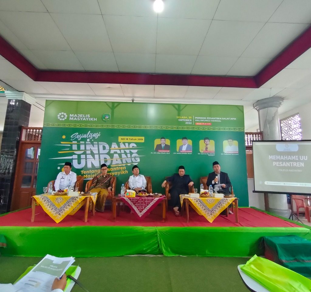 Kendal-Majelis Masyayikh (MM) merupakan lembaga mandiri dan independen sebagai perwakilan Dewan Masyayikh dalam merumuskan dan menetapkan sistem penjaminan mutu Pendidikan Pesantren. Layanan MM diantaranya Pendidikan Diniyah Formal (PDF) Ula, Wustha dan Ulya, Pendidikan Muadalah Ula, Wustha dan Ulya, Ma’had Aly dan Pengkajian Kitab Kuning. Kali ini hadir Ketua MM KH. Abdul Ghoffar Rozin, M. Ed menyampaikan amanat Undang-Undang Pesantren nomor 18 tahun 2019 di komplek Pondok Pesantren APIK Kaliwungu.(25/10).