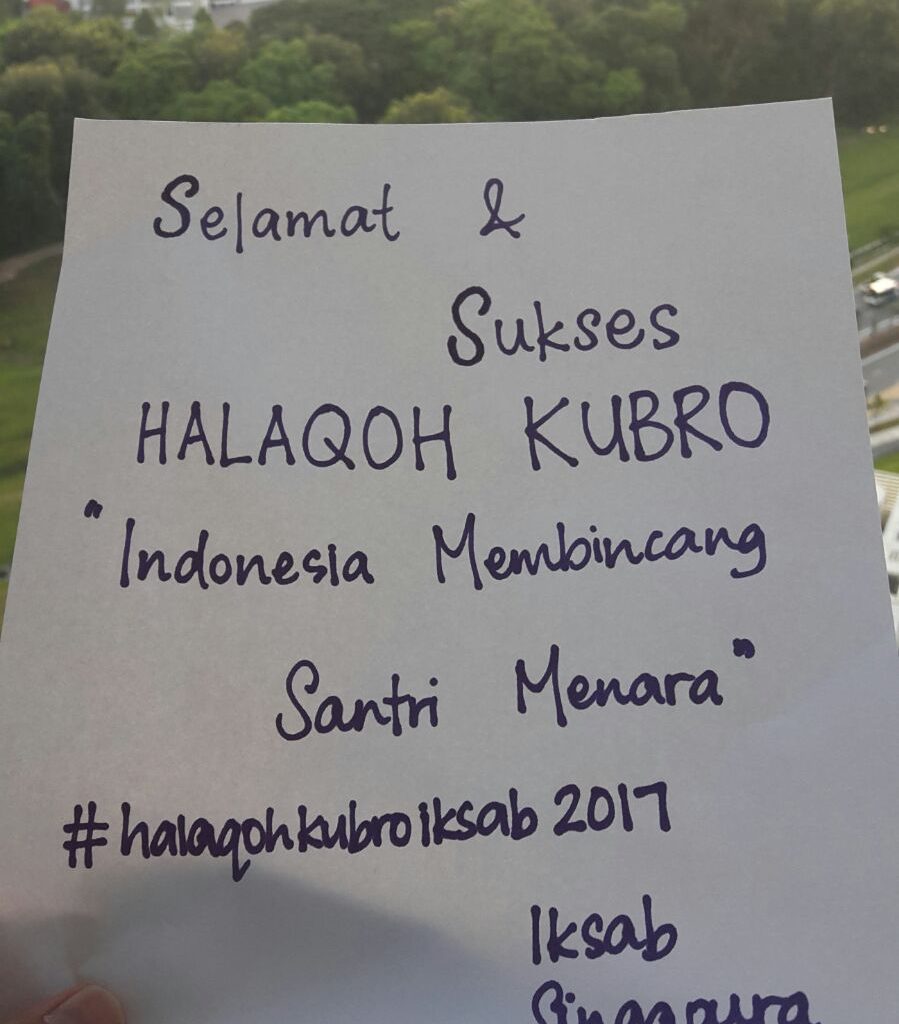 Meski tidak bisa hadir di Halaqoh Kubro TBS 2017 kali ini, Iksab TBS Singapura tetap ingin memberi ucapan selamat. Dengan tuisan tangan ucapan selamat dengan latar belakang pemandangan di Singapura. Haniful Irsyard, Alumnus tbs yang kini sedang tinggal di Singapura.