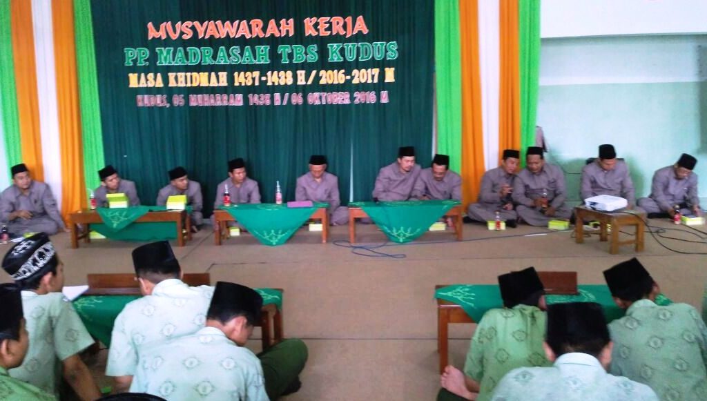 SANTRIMENARA.COM, KUDUS – Musyawarah Kerja Persatuan Pelajar (PP) Madrasah TBS Kudus Masa Khidmah 1437-1438 H / 2016-2017 M yang dilaksanakan pada hari Kamis (06/10/2016) di Aula Ponpes Ath Thullab sangat berbeda dengan Muker tahun-tahun sebelumnya. Ada banyak perubahan yang dilakukan oleh Fahrul Humam Ketua PP TBS terpilih.