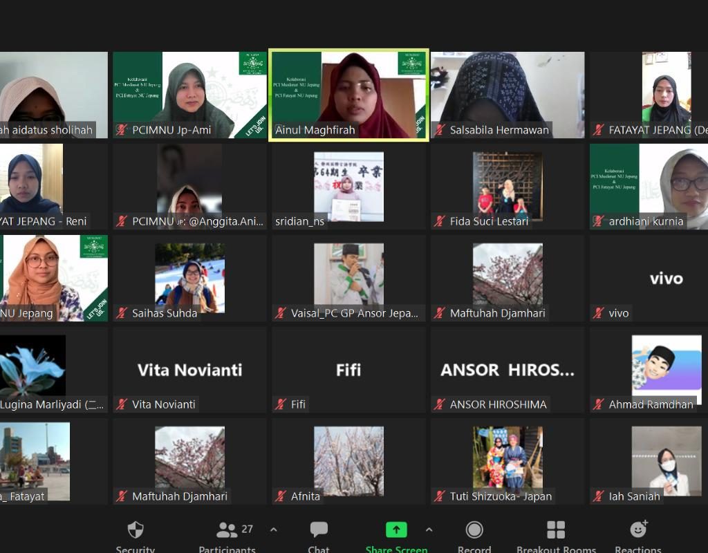 Dede Iis, Ketua PCI Fatayat NU Jepang, dalam sambutannya mengatakan bahwa acara tersebut merupakan program pertama kolaborasi muslimat dan fatayat NU Jepang di kepengurusan yang baru terbentuk.